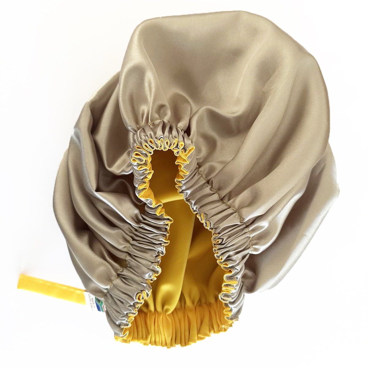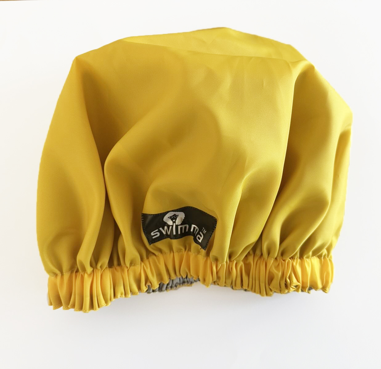 This is not a shower cap as you know it. It is luxurious with a satin lining. Gone are the cheap looking plastic caps that didn’t fit in the first place.? A proper sized loop to hang it with. And of course it wouldn’t be a Swimma if it didn’t fit big hair!.